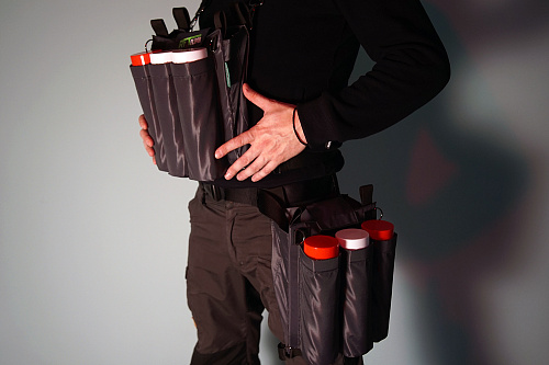 Сумка состоит из двух идентичных по функционалу половин в виде планшета, каждая из которых имеет по три внешних отделения для баллонов, вместительный отсек под ветошь, и дополнительный отсек-фартук на креплении типа «липучка», который можно использовать для принадлежностей (фонарь, блокнот, ручка или дополнительная ветошь). В собранном виде изделие представляет с собой сумку с двух внешних сторон которой располагаются по три отсека для баллонов, и вместительный внутренний отсек для ветоши.