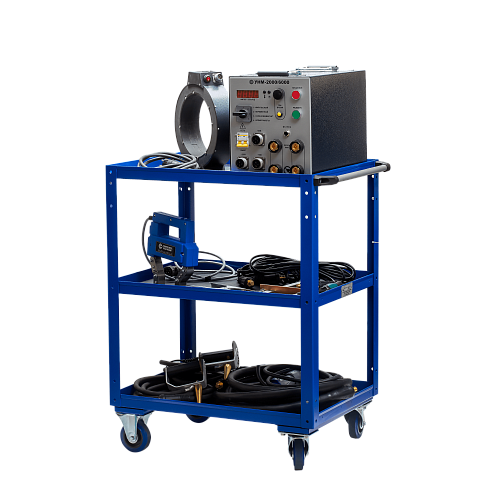 Прибор комплектуется силовыми кабелями, выносными соленоидами и электромагнитом, с помощью которых можно производить продольное или циркулярное намагничивание детали. Для транспортировки технического средства и обнаружения дефектов в полевых условиях предусмотрена тележка. Намагничивание осуществляется переменным, постоянным или импульсным током большой величины, за счет чего достигаются высокие значения напряженности намагничивающего поля.