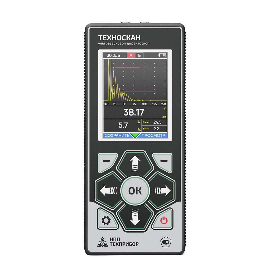 Портативный, полностью цифровой, ультразвуковой дефектоскоп ТЕХНОСКАН общего назначения с массой менее 300 гр. представляет собой простой в настройке и эксплуатации инструмент для контроля в труднодоступных местах и в прочих условиях, когда габариты и вес инструмента являются критичными. Несмотря на малые размеры, обладает хорошим быстродействием, современным морозостойким TFT экраном с тремя цветовыми схемами (в том числе для работы при ярком солнечном свете) и всеми основными функциями современного дефектоскопа: